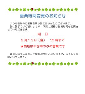 営業時間変更のお知らせ